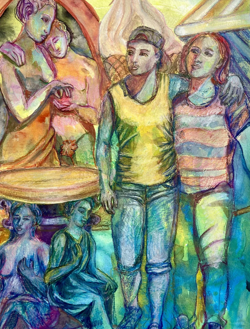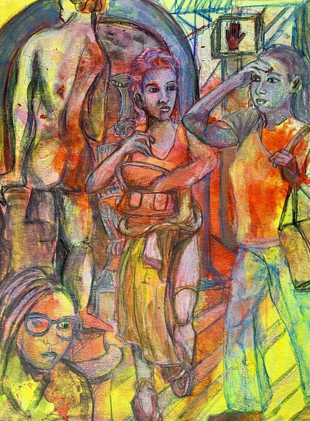 The Chorus, Fluid Acrylics, Ink, Watercolor, Pencil on Paper 9x12, 2024